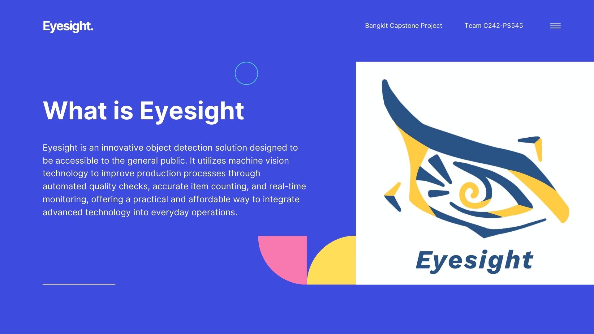 Eyesight is a computer vision-based quality inspection system developed as part of the Google Bangkit 2024 capstone project.